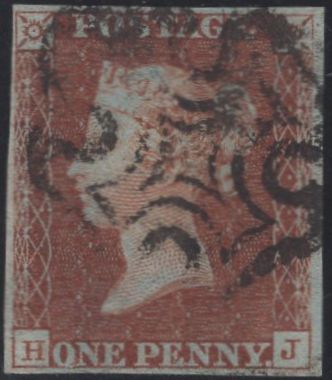 1841 1D RED PL.10 (SG7)(HJ). Fine used 1841 1d red pl.10 (SG7) lettered HJ with four good to fine margins and cancelled black Maltese cross. Stamp clearly shows 'O' flaw and square 'J'. (Ref 135238).