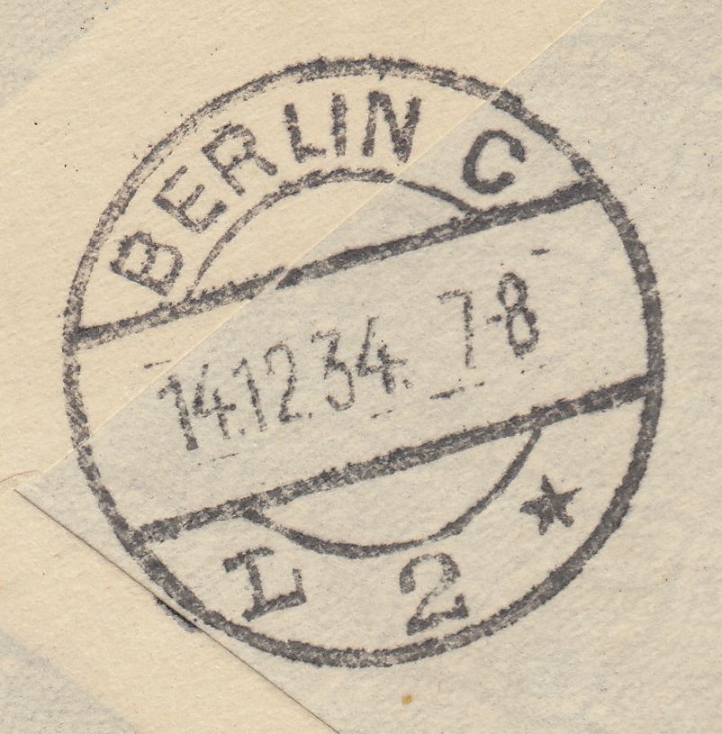 1934 AIRMAIL VIA DEUTSCHE LUFTPOST WIMBLEDON TO ARGENTINA WITH 1S X 4. Fine envelope sent airmail from Wimbledon to Buenos Airies, Argentina with KGV 1s bistre-brown (SG429) x 4 cancelled neat 'WIMBLEDON/S.W.19/POST EARLY FOR CHRISTMAS' slogan dated 10 DEC 1934. On front fine strike 'AEROPLANE/CHRISTMAS DECORATIONS/DEUTSCHE LUFTPOST/WEIHNACHTEN 1934/EUROPA-SUDAMERIKA' cachet. On reverse 'BERLIN' date stamp 14 12 34. (Ref 141555).