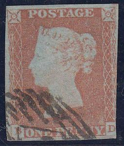 1846 1d plate 69 (BD)(SG 8). Used example lettered BD three margins, showing non-constant marks in N.E. square.  (Ref 52851).