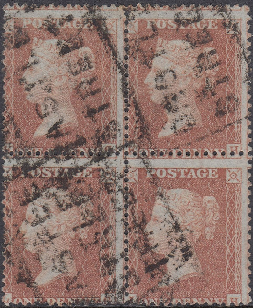1855 die 2 alp 2 pl.5 L.C.14 (Spec C6). Used BLOCK OF FOUR lettered KG-LH, centred low cancelled 'Castle Street' boxed Scots Local. (Ref 66550).