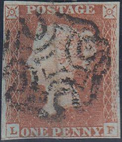 1842 1D PL.24(SG8)(LF). Used 1842 1d pl.24 (SG8) lettered LF, vertical crease, four close to fine margins cancelled fine strike black Maltese cross. (Ref 69030).