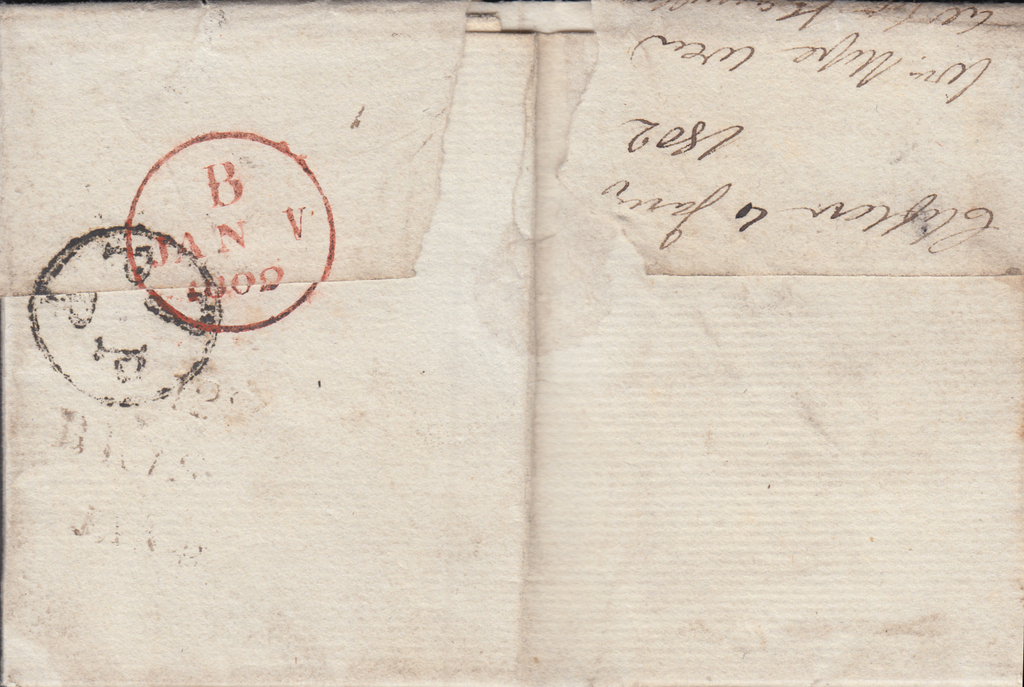 BRISTOL CIRCULAR '7PPP' PENNY POST HANDSTAMP. 1802 entire Clifton to Haddington redirected to Dunbar dated January 4, on front good strike two line HAD/DINGTON hand stamp in black and on reverse good strike of the circular and scarce "7PPP" Bristol Penny Post receivers hand stamp in black. Bristol date stamp JAN 4 1802. (Ref 87161).