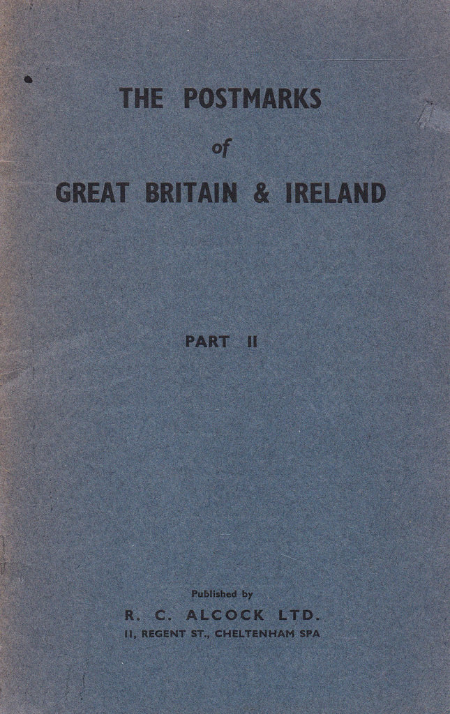 'THE POSTMARKS OF GREAT BRITAIN and IRELAND PART II' BY ALCOCK. Fine copy of the 1955 paperback, 62 pages, bringing together the information from the 14 previous supplements to their 1940 classic. Good information with fine illustrations. (Ref 91005).
