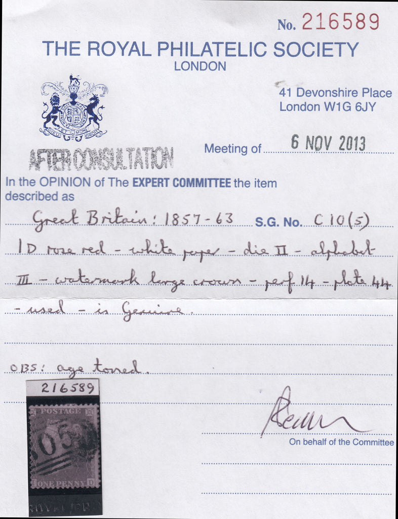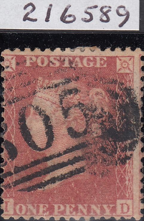 PL.44 (SG40)(ID). Good used 1857 die 2 1d pl.44 rose-red on white paper (SG40) lettered ID, centred to left. (Ref 113568).