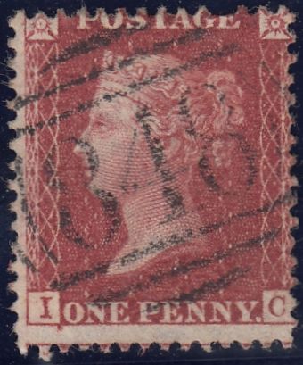 PL.52 (SG40)(IC CONSTANT VARIETY). Fine used 1857 die 2 1d pl.52 rose-red on white paper (SG40) lettered IC cancelled neat '848' of Warwick and showing constant variety 'MARK ATTACHED TO 'I' SQUARE'. (Ref 118901).
