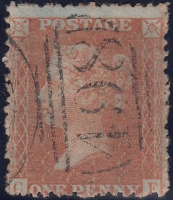 1856-57 1D PL.27 MATCHED PAIR LETTERED CF ON BLUED PAPER (SG29) AND WHITE PAPER (SG40). Good used 1856 1d pl.27 red-brown on blued paper lettered CF cancelled '498' numeral of Manchester matched with good used rose-red on white paper printing (SG40) cancelled London '17' Inland Office numeral. Both centred low. (Ref 119507).