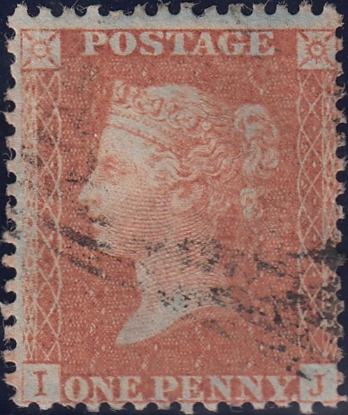 • 119912 1856-7 DIE 2 1D PL.27 MATCHED PAIR LETTERED IJ ON BLUED PAPER (SG33) AND WHITE PAPER (SG40).