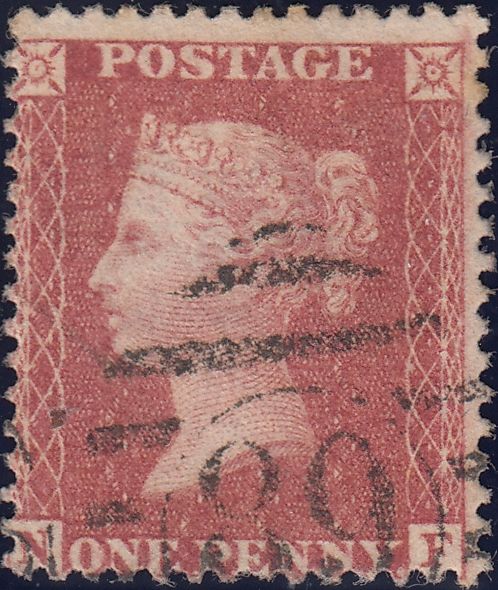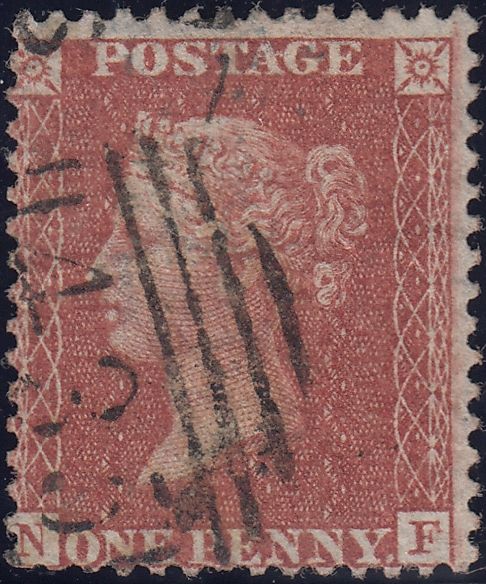 1856-57 1D DIE 2 PL.27 MATCHED PAIR LETTERED NF ON BLUED PAPER (SG29) AND WHITE PAPER (SG40). Good used 1856 die 2 1d pl.27 red-brown on blued paper (SG29) lettered NF, several shorter perforations, cancelled '435' English type Irish spoon of Tuam (Galway). Matched with fine used rose-red on white paper printing (SG40) with London '89' cancellation. (Ref 120116).