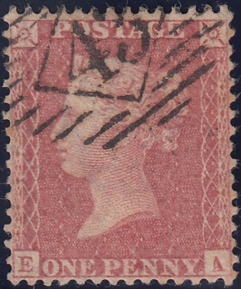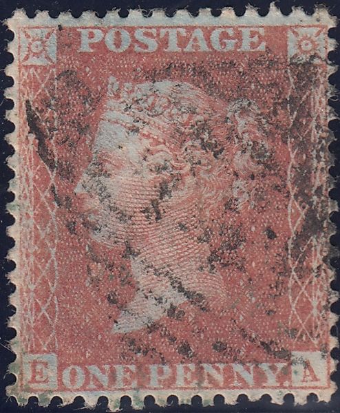1856-7 DIE 2 1D PL.27 MATCHED PAIR LETTERED EA ON BLUED PAPER (SG29) AND WHITE PAPER (SG40). Good used 1856 die 2 1d pl.27 red-brown on blued paper (SG29) lettered EA, fine perforations and Irish cancellation, matched with fine used rose-red on white paper printing (SG40) cancelled neat London '43' Inland Office numeral. Fine matched pair. (Ref 120137).