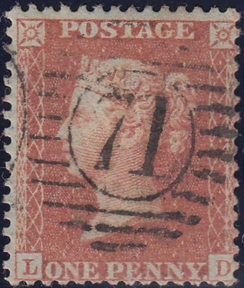1856-7 DIE 2 1D PL.27 MATCHED PAIR LETTERED LD ON BLUED PAPER (SG29) AND WHITE PAPER (SG40). Fine used 1856 die 2 1d pl.27 red-brown on blued paper (SG29) lettered LD cancelled neat London '71' numeral matched with fine used rose-red on white paper printing (SG40) cancelled neat '626' numeral of Prescot (Lancs). (Ref 120152).