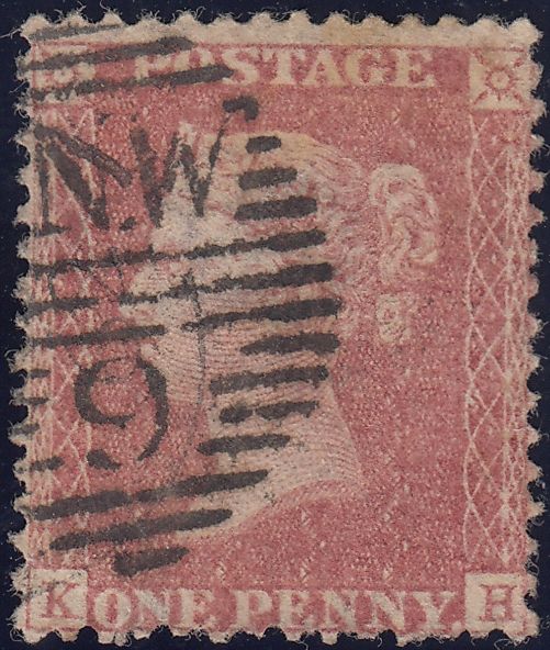 1856-1857 MATCHED PAIR DIE 2 1D PL.27 LETTERED KH ON BLUED PAPER (SG29) AND WHITE PAPER (SG40). Fine used 1856 die 2 1d pl.27 red-brown on blued paper (SG29) lettered KH matched with used example rose-red on white paper printing (SG40) also lettered KH, several short perforations, cancelled 'N.W/9' numeral. Both stamps clearly show the distinctive 'GOTHIC K'. (Ref 128600).