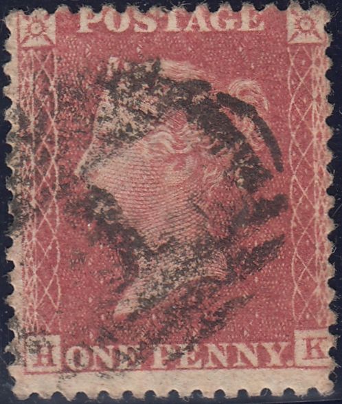 1858 1D PL.61 (SG40)(HK). Good to fine used 1858 die 2 1d pl.61 rose-red on white paper (SG40) lettered HK cancelled fine strike '1' numeral of Abergavenny (Monmouth). (Ref 131199).