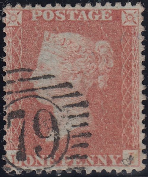 1856-57 DIE 2 1D PL.43 MATCHED PAIR LETTERED LI ON BLUED PAPER (SG29) AND WHITE PAPER (SG40). Fine to very fine used 1856 die 2 1d pl.43 red-brown on blued paper (SG29) lettered LI with London '79' District Office numeral, matched with good used rose-red on white paper printing (SG40) cancelled '648' numeral of Rochdale. (Ref 133066).