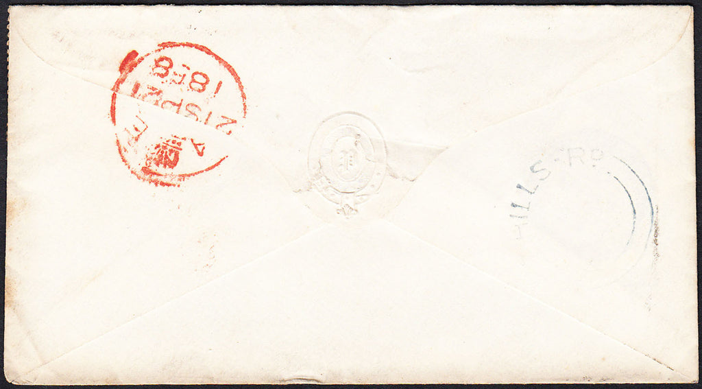 1858 CAMBS/'HILLS-RD' UDC. Envelope Cambridge to London with fine Die 2 1d rose-red on white paper (SG40) lettered NE tied CAMBRIDGE sideways duplex SP 20 58 code C. On reverse good strike HILLS-RD udc in dark blue. (Ref 87542).