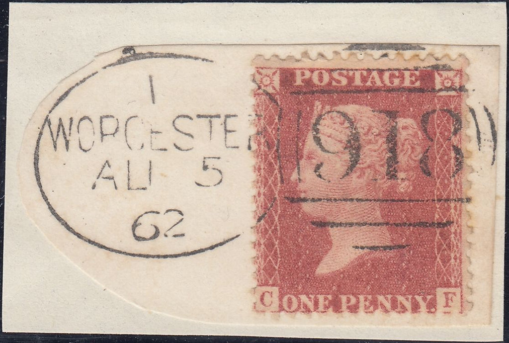 1862 WORCESTER SPOON 2ND RECUT (RA129)/PL.27 (SG40)(CF). Small piece with fine die 2 1d pl.27 rose-red on white paper (SG40) lettered CF tied fine strike 'WORCESTER/918' spoon 2nd recut (RA129) AU 5 62, code 'I'. Scarcer spoon. (Ref 131202).