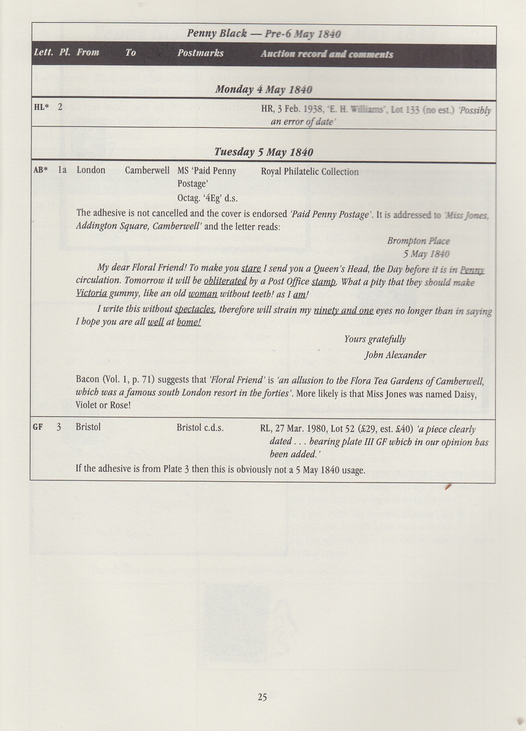 MAY DATES - A SURVEY OF PENNY BLACKS, TWOPENNY BLUES, MULREADYS AND CARICATURES USED DURING MAY 1840 BY MIKE JACKSON. Superb copy of this exceptional publication (hardback 1999, 334 pages) detailing many May Date usages in detail including pedigree's. Essential reference for the line engraved collector.  (Ref 91084).