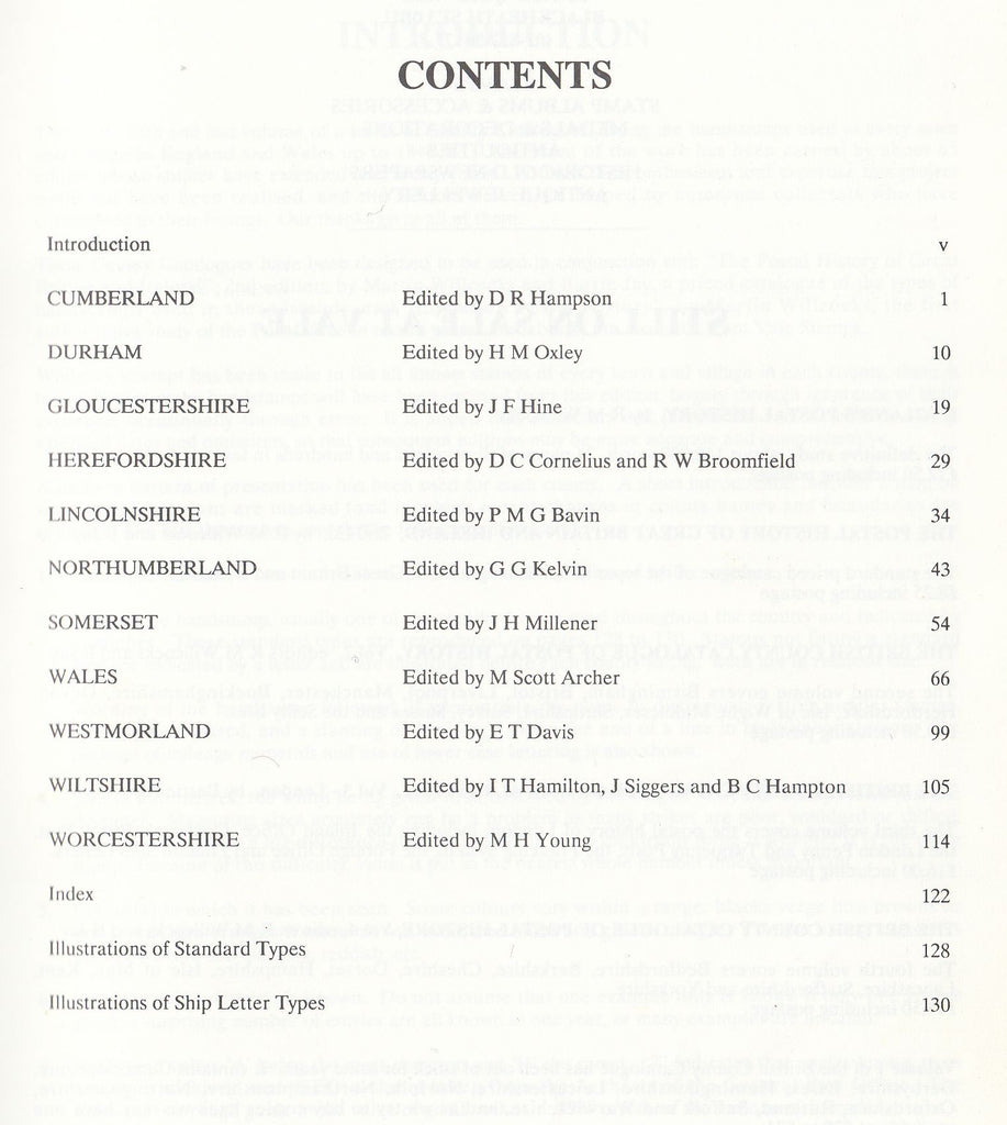 'THE BRITISH COUNTY CATALOGUE OF POSTAL HISTORY VOL.5' BY WILLCOCKS and JAY. A fine copy of this excellent book (1990) listing the hand stamps of 10 Counties - Cumbs, Durham, Glos, Herefordshire, Lincs, Northumberland, Soms, Westmorland, Wilts and Worcs, also Wales. Superb and essential reference. (Ref 91160).